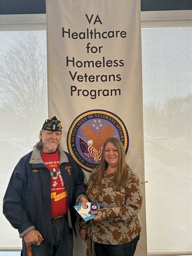 Post 1528 Commander Tom Johnston (Not pictured) and member Jim Taylor (Left) present $200 in gift cards to Kristen Weese, Director of the VA Homeless Veterans program. We used proceeds from a recent raffle to purchase the cards